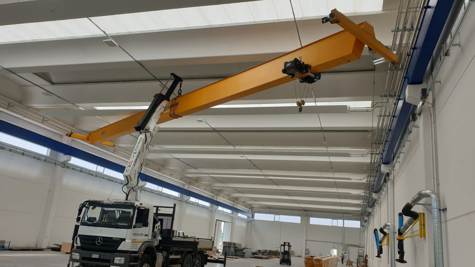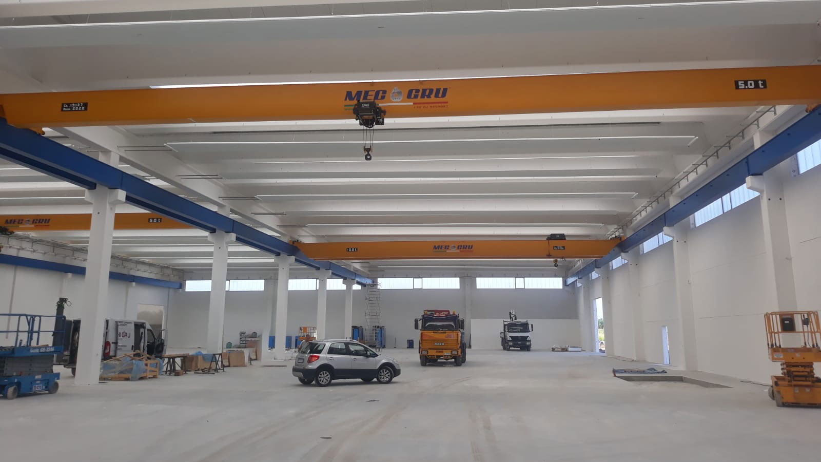 La fornitura ha previsto nella prima fase realizzata nel 2019-2020 la fornitura di circa 600m di vie di corsa realizzate in cassone e di n°4 vari gru a ponte monotrave e bitrave portata 5t e 10t con scartamento 23,5m assemblate con crane kit standardizzato SWF e paranco a fune Nova.