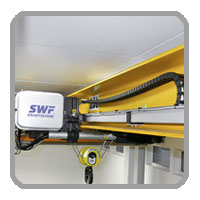 Tutti i componenti della gru quali paranchi, argani, testate, motori, quadri elettrici sono progettati, standardizzati, e prodotti in grande serie da SWF specificatamente per questo tipo di utilizzo.