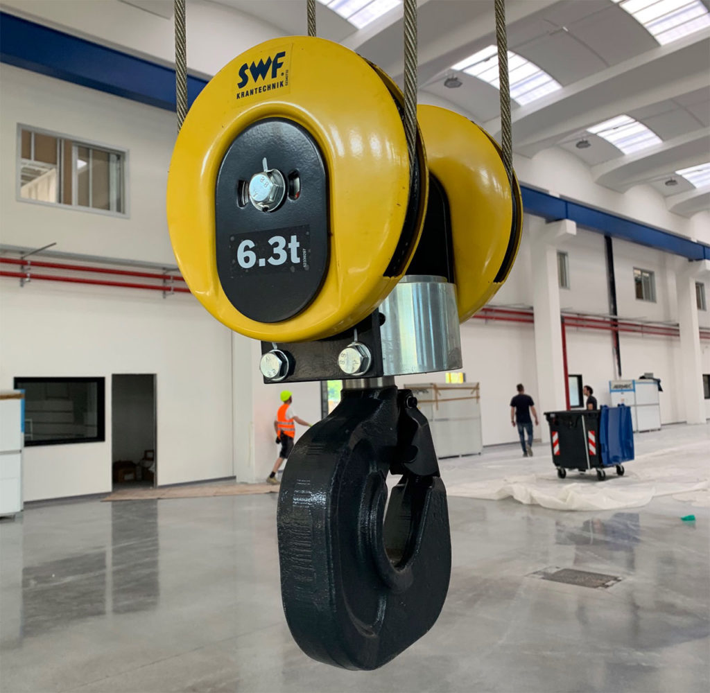 • Componentistica (paranco – motori – testate – quadri elettrici) standardizzata tedesca SWF – massima silenziosità e qualità di tutti i componenti