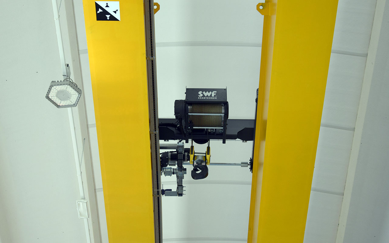 • Componentistica (paranco – motori – testate – quadri elettrici) standardizzata tedesca SWF – massima silenziosità e qualità di tutti i componenti