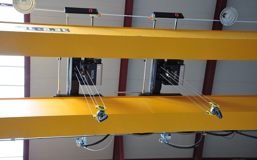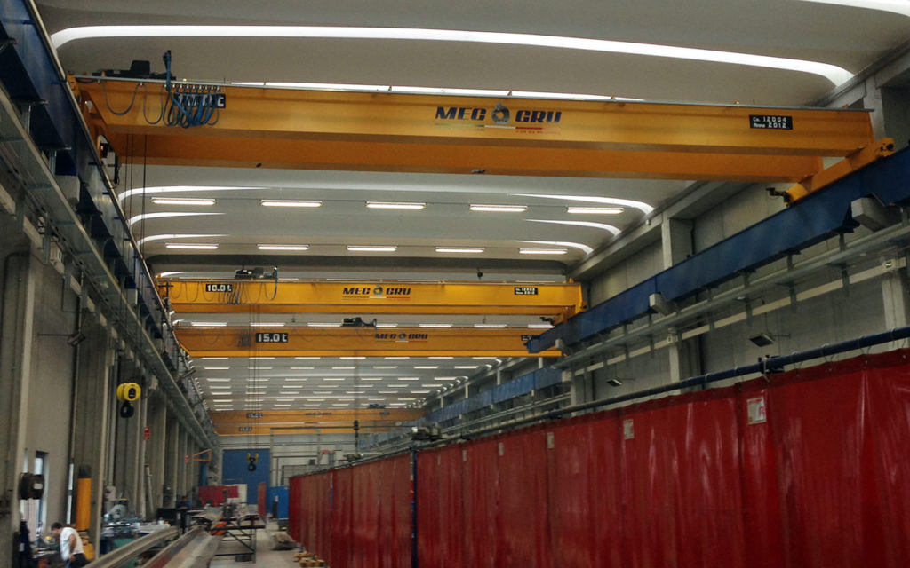 MEC GRU in collaborazione con il cliente ha progettato impianti di sollevamento standard e speciali dotati esclusivamente di componentistica SWF (paranchi – testate – quadri elettrici) e radiocomandi Telecrane Italia.